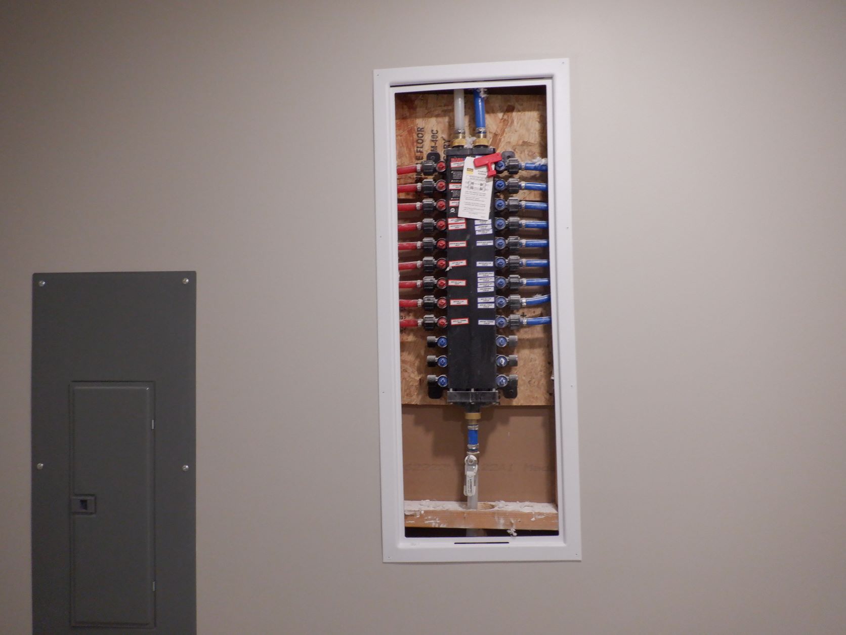 of the PEX water supply plumbing manifold in a new home in